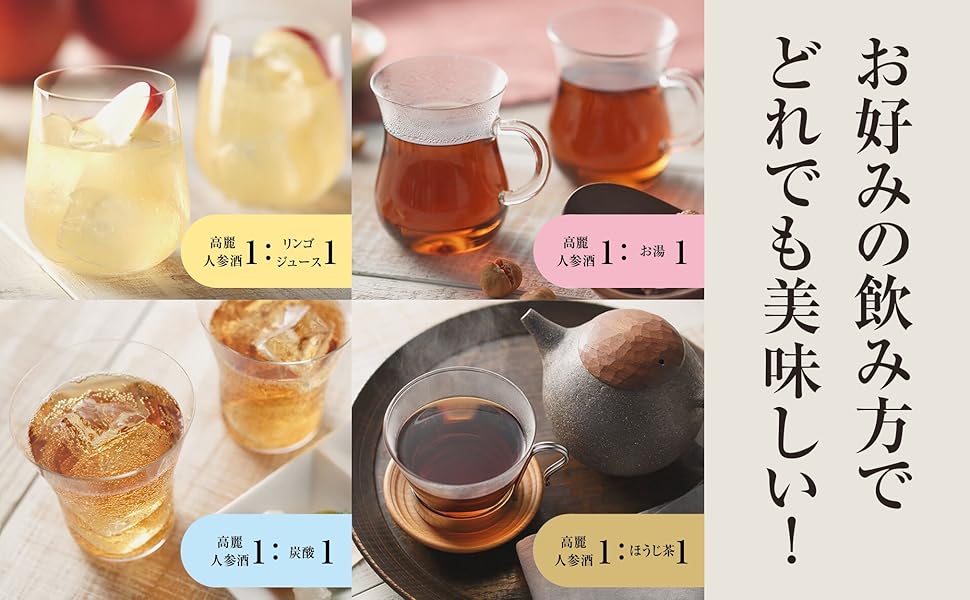 高麗人参酒の魅力は、飲み方の自由度にもあります。ストレートやロックはもちろん、気分やシーンに合わせてアレンジしても、しっかり美味しく楽しめるのが特長です。